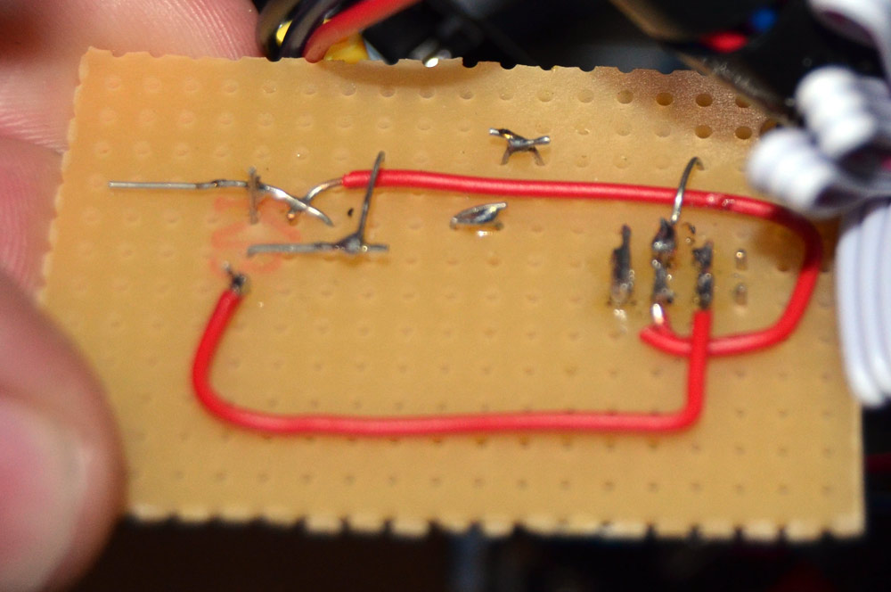 Ihr kehrt hier mit einem Transistor das Signal um. Dieses Bauteil wird nun zwischen optischen Endstop und Anet Controller gesteckt und ihr seid hier auch fertig.