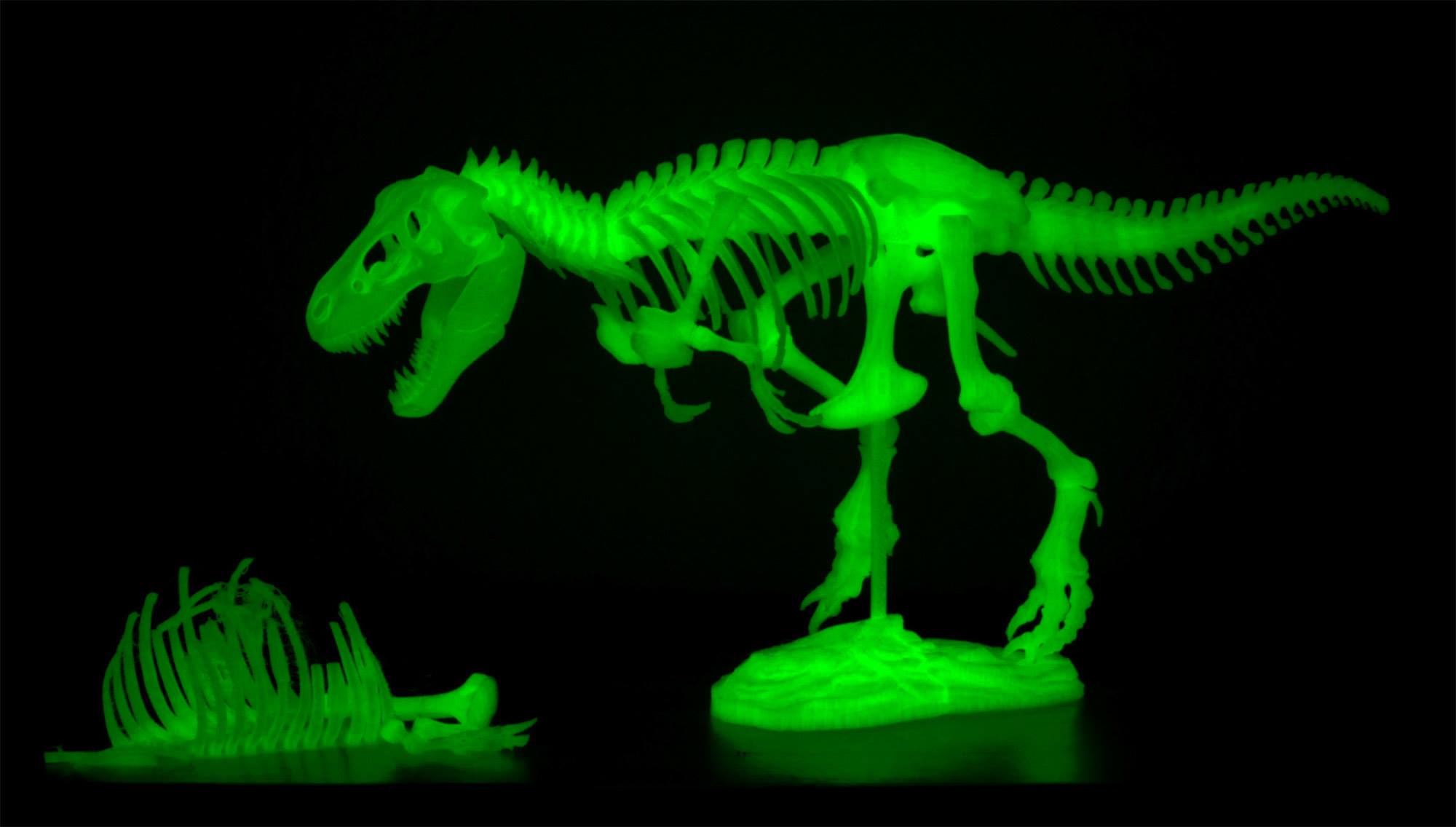 Das T-Rex Skelett wurde mit einer Schichtdicke von 0,1mm und einem Infill von 0-45% gedruckt. Support war nicht nötig.